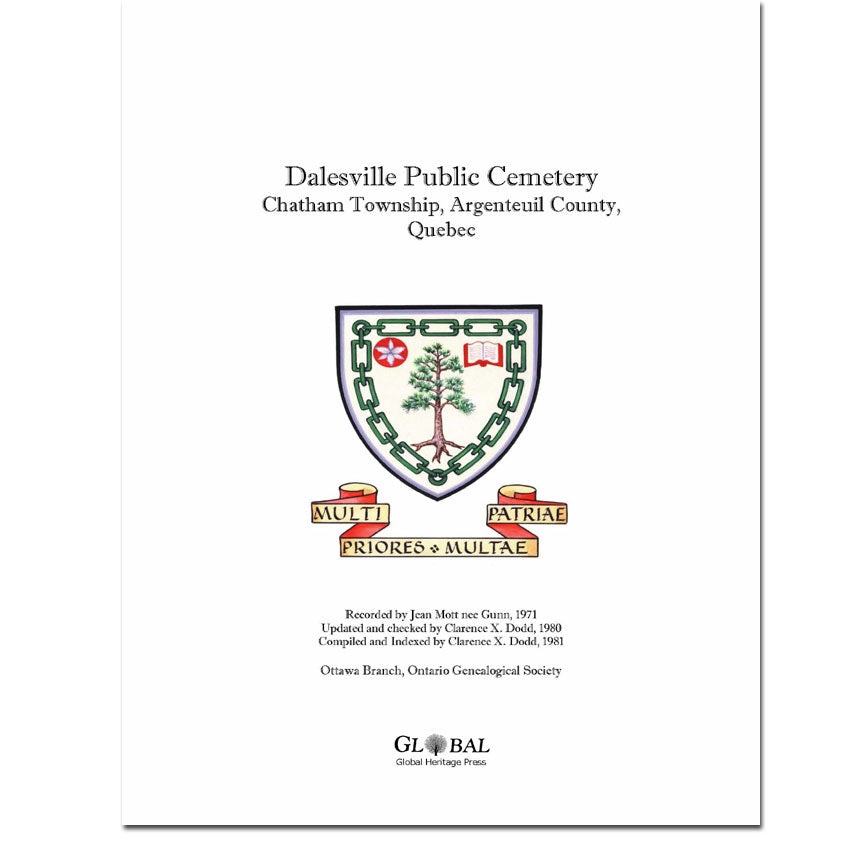 The first section of this book includes transcriptions of the informaton engraved on memorials stones in Dalesville Public Cemetery, Chatham Township, Argenteuil County, Quebec recorded during the summers of 1971 & 1980. Includes an Index (see below for a link to the Index)